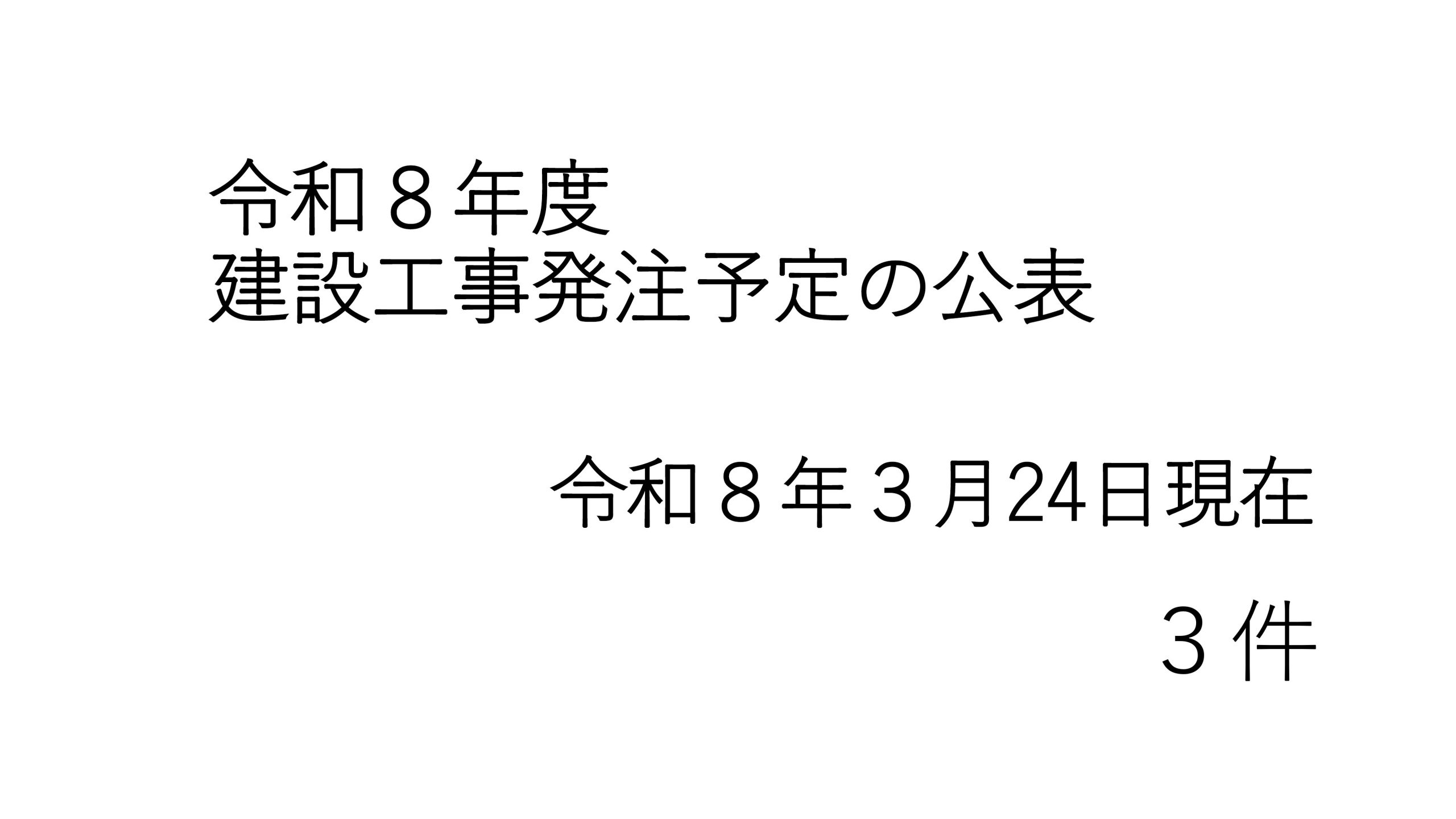 令和8年度 建設工事発注予定の公表 2026 3/25 入札関係 2026年3月24日2026年3月25日 令和8年度建設工事発注予定の公表 令和8年3月24日現在 3件 入札情報こちらから Post Views: 143 入札関係 よかったらシェアしてね! URLをコピーしました! URLをコピーしました! 令和8年度 第1回危険物取扱者試験準備講習会日程 入札公告 (令和8年4月2日公告) この記事を書いた人 gakunan 関連記事 入札公告 (令和8年4月2日公告) 2026年4月2日 コメント コメントする コメントをキャンセルコメント ※ 名前 ※ メール ※ サイト 次回のコメントで使用するためブラウザーに自分の名前、メールアドレス、サイトを保存する。